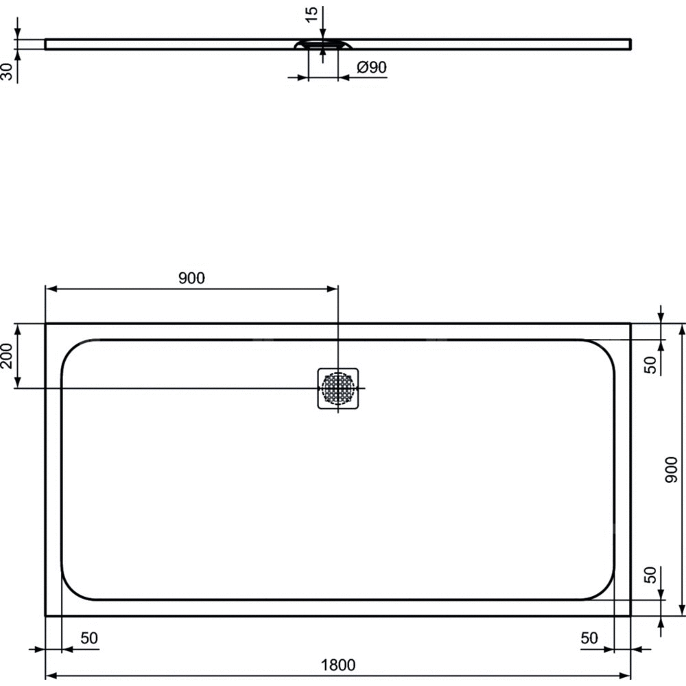 Brodzik grubości 30mm wykonany z materiału IDEAL SOLID. Klasa anty-poślizgowa C. Montaż na podłodze lub nad podłogą (do skompletowania z nogami do brodzika). Pokrywa odpływu ze stali nierdzewnej. Zalecane dodatkowe elementy: Syfon do brodzika - bez pokrywy (K936367). Uniwersalny zestaw nóg do brodzika (dla rozmiaru 1000 mm i większych - konieczne są 2 szt. K936467) (K936467).