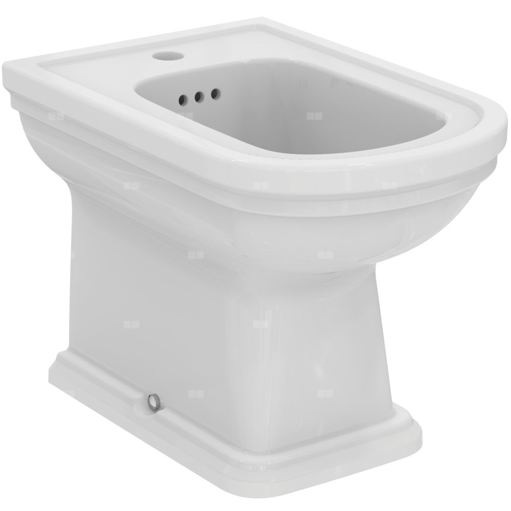 Bidet stojący Calla, przylegający do ściany. 1 otwór wybity. 3 dostępne otwory przelewowe. Zestaw montażowy w komplecie.