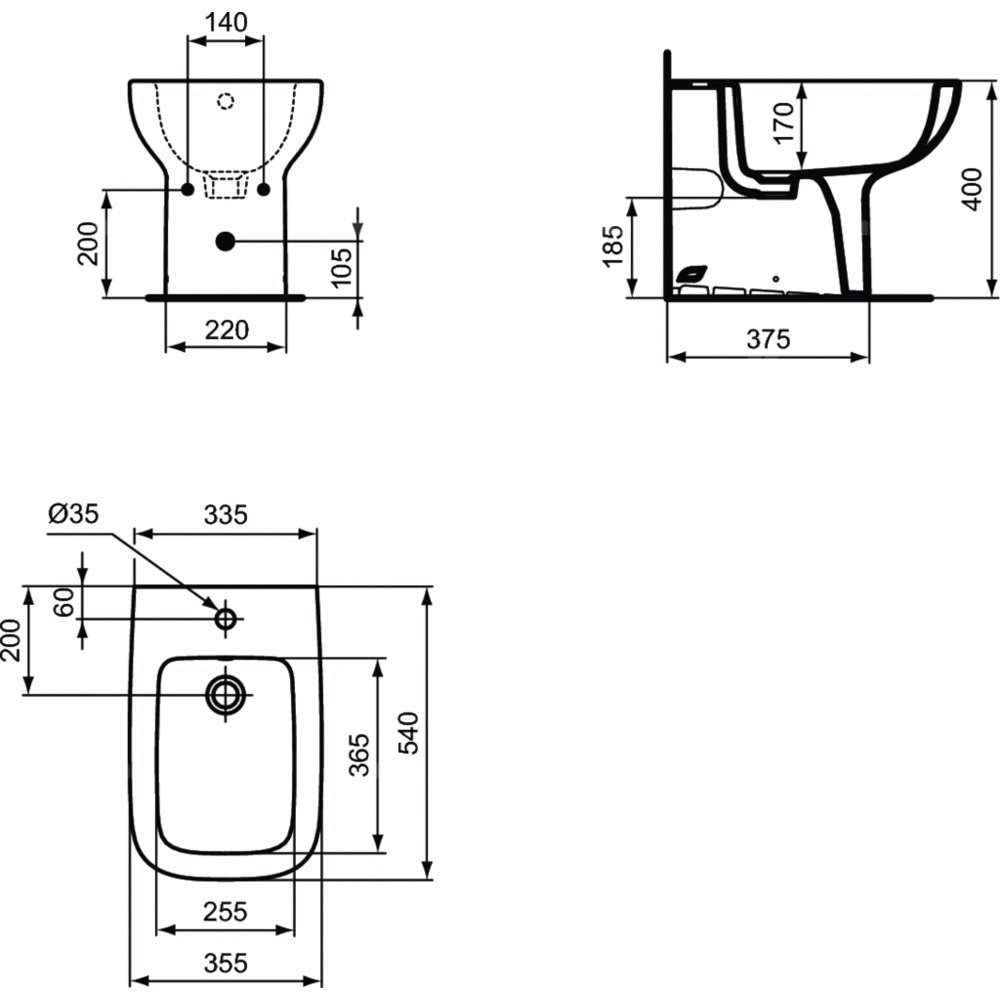 Bidet Ideal Standard i.life A stojący z 1 otworem na baterię. Zestaw montażowy w komplecie.