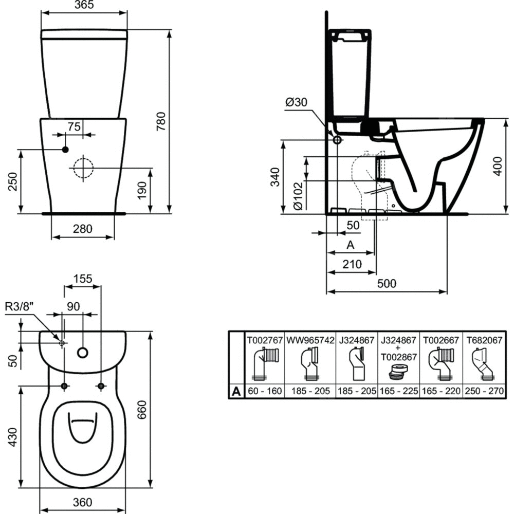 Kompakt WC. Miska o kształcie przylegającym do ściany. Do skompletowania ze zbiornikiem i wolnoopadającą lub zwykłą deską sedesową w wersji typowej lub THIN. Odpływ poziomy, do odpływu pionowego należy zamówić kolano przyłączeniowe 90° J324867. Zestaw montażowy TT0257919 w komplecie. Konieczne dodatkowe elementy: Zbiornik do kompaktu CUBE, zbiornik 3/6 l, dopływ wody z dołu E7970xx lub. Zbiornik do kompaktu CUBE, zbiornik 3/6 l, dopływ wody z boku E7971xx lub. Zbiornik do kompaktu Scandinavian, zbiornik 3/6 l, dopływ wody z dołu E7175xx lub. Zbiornik do kompaktu ARC, zbiornik 3/6 l, dopływ wody z dołu E7856xx lub. Zbiornik do kompaktu ARC, zbiornik 3/6 l, dopływ wody z boku E7861xx. Deska sedesowa typu Thin, z duroplastu E772301 lub. Deska sedesowa typu Thin, z duroplastu, wolnoopadająca E772401 lub. Deska sedesowa, z duroplastu E712801 lub. Deska sedesowa, z duroplastu, wolnoopadająca E712701. Zalecane dodatkowe elementy: Kolano przyłączeniowe 90° J324867.