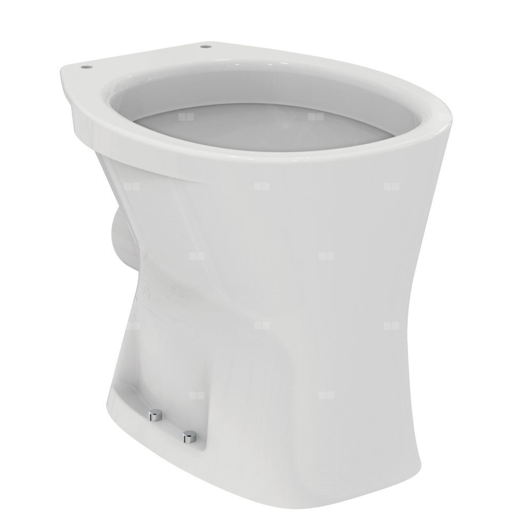 Miska WC Eurovit stojąca pojedyncza - lejowa, z poziomym odpływem. Bez rekomendowanego 2-częściowego zestawu montażowego (M 6 x 70 mm). Sprawdź listę dostępnych opcji dla desek sedesowych z pokrywami w katalogu/cenniku (osobne zamówienie).