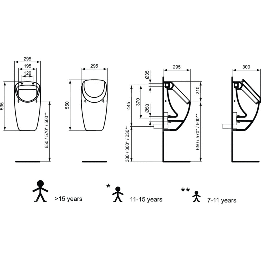 CONNECT HOME Pisuar. Do skompletowania z wolnoopadającą pokrywą E5674. Dopływ wody z tyłu, ukryty. Odpływ poziomy, do skompletowania z syfonem odpływ poziomy. Spłukiwanie 0,3-0,7 l/ sec. maksymalnie 2 l. Zestaw montażowy TT025719 w komplecie. Do skompletowania z zestawem przyłączeniowym do pisuarów K710667. Konieczne dodatkowe elementy: Pokrywa pisuaru, woloopadająca E567401. Zalecane dodatkowe elementy: Zestaw przyłączeniowy do pisuaru K710667. Syfon - odpływ poziomy K822367.