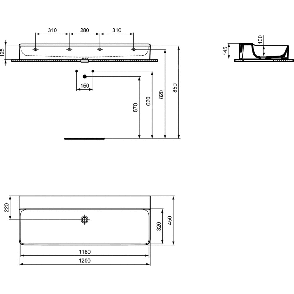 Umywalka Conca mocowana do ściany bez przelewu i otworu na baterię.