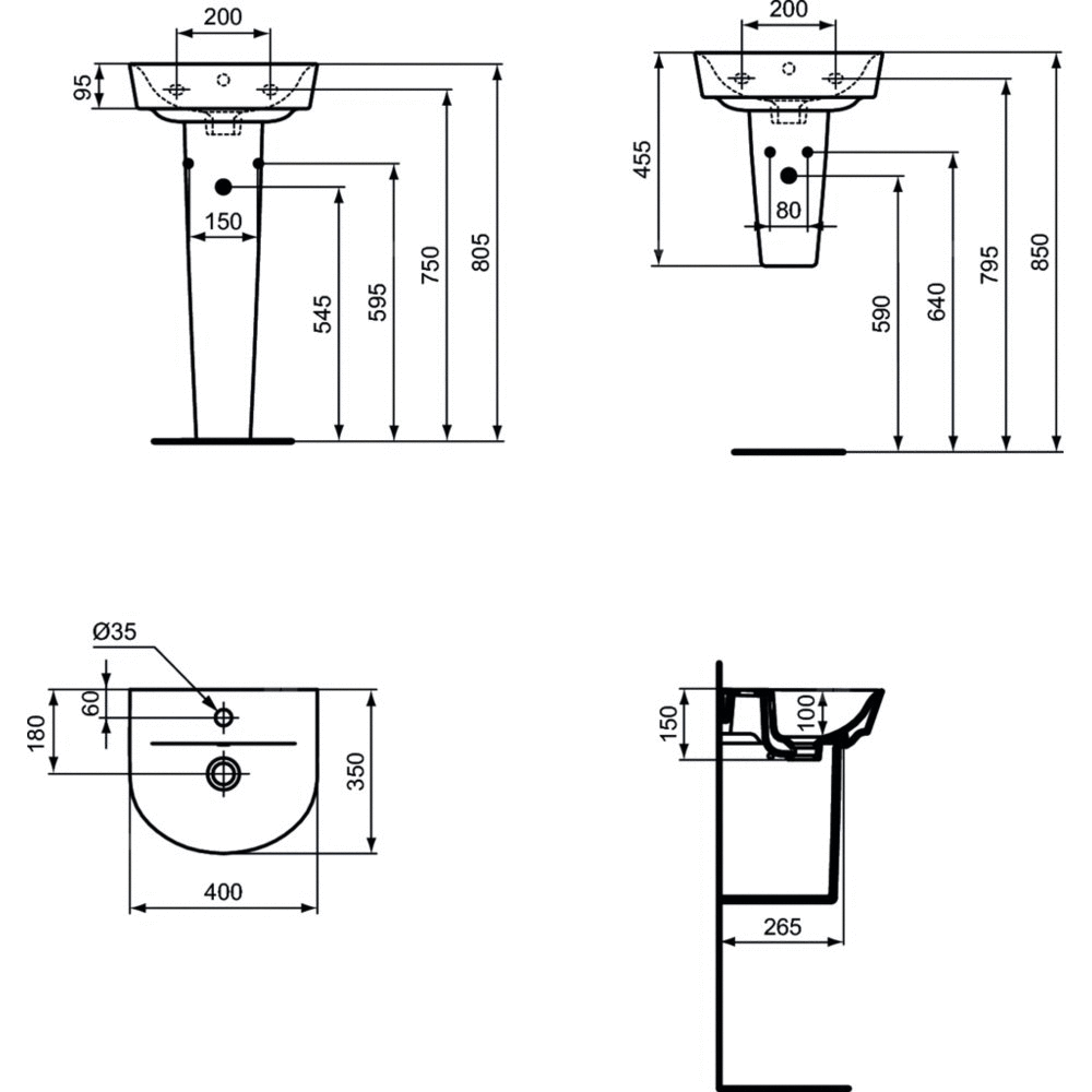 Umywalka 40 cm z otworem na baterię. Indywidulane opakowanie. EN 14688. Możliwość skompletowania z postumentem E074901, półpostumentem E074801, meblami Connect Air lub z syfonem dekoracyjnym. Zalecane dodatkowe elementy: Brak zestawu montażowego, rekomendowany zestaw typu M10 x 140 mm (WW965340). Syfon dekoracyjny do umywalki G1 1/4 (E0079AA). Przyłącze kątowe dekoracyjne (A3491AA). Syfon G1 1/4 (A2305AA). Przyłącze kątowe (B7883AA). Rozeta do syfonu G1 1/4 (B4801AA).