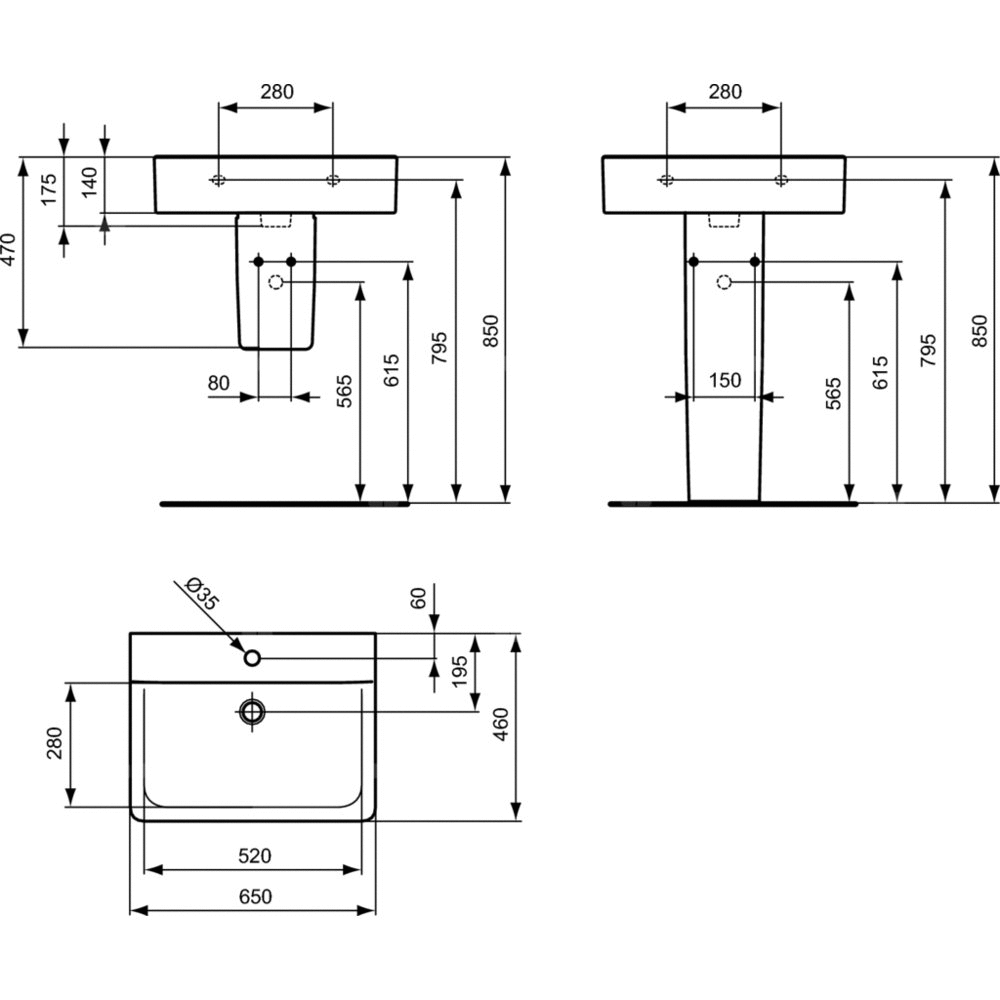 Z otworem na baterię i bez przelewu (bez przelewu do skompletowania z korkiem D5852AA). Możliwość skompletowania z postumentem E7973, półpostumentem dużym E7974 lub odpowiednimi meblami. Brak zestawu montażowego, rekomendowany zestaw typu M10 x 140 mm. Zalecane dodatkowe elementy: Postument E7973xx. Półpostument E7974xx. Zestaw montażowy M10 x 140 mm WW965340. Syfon G1 1/4 A2305AA. Przyłącze kątowe B7883AA. Rozeta do syfonu G1 1/4 B4801AA. Korek G1 1/2 do umywalek bez przelewu D5852AA.