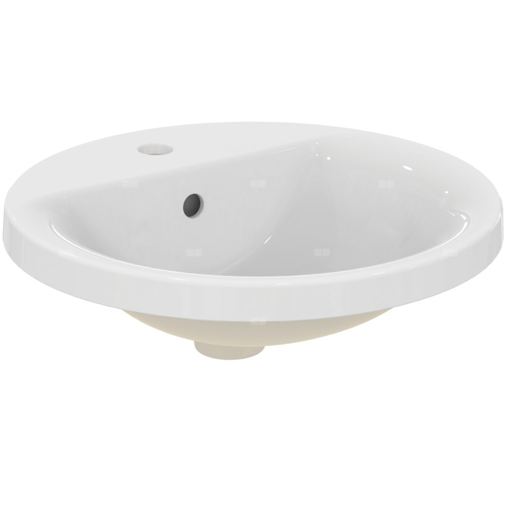 Otwór na baterię. Otwór przelewowy. W komplecie szablon do wycinania w blacie. Zalecane dodatkowe elementy: Syfon dekoracyjny do umywalki G1 1/4 E0079AA. Przyłącze kątowe dekoracyjne A3491AA. Syfon G1 1/4 A2305AA. Przyłącze kątowe B7883AA. Rozeta do syfonu G1 1/4 B4801AA. Rozeta przelewu TT0228301.