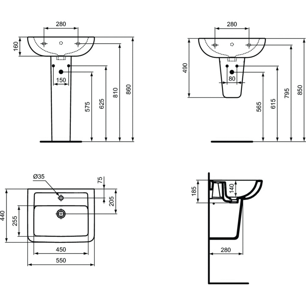 Otwór na baterię. Możliwość skompletowania z postumentem R206601, z półpostumentem R330901. Brak zestawu montażowego, rekomendowany zestaw typu M 10x140 mm. Zalecane dodatkowe elementy: Postumentem R206601. Półpostument R330901. Postumentem mały T427201. Półpostument mały T426701. Zestaw montażowy M10 x 140 mm WW965340. Syfon G1 1/4 A2305AA. Przyłącze kątowe B7883AA. Rozeta do syfonu G1 1/4 B4801AA.