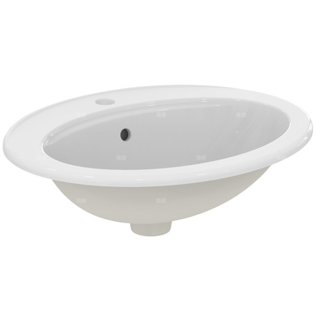 Umywalka nablatowa Eurovit z centralnie wykrojonym otworem na baterię, z przelewem.