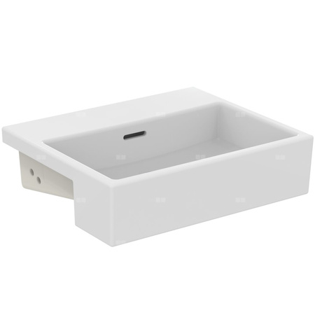 Umywalka półblatowa Extra, bez otworu na baterię, z przelewem (kształt szczelinowy). Zestaw montażowy E209167 oraz szablon do wycinania TT0299737 w komplecie. Sprawdź dostępne opcje i rekomendowane wyposażenie w cenniku i katalogu Atelier Collections.
