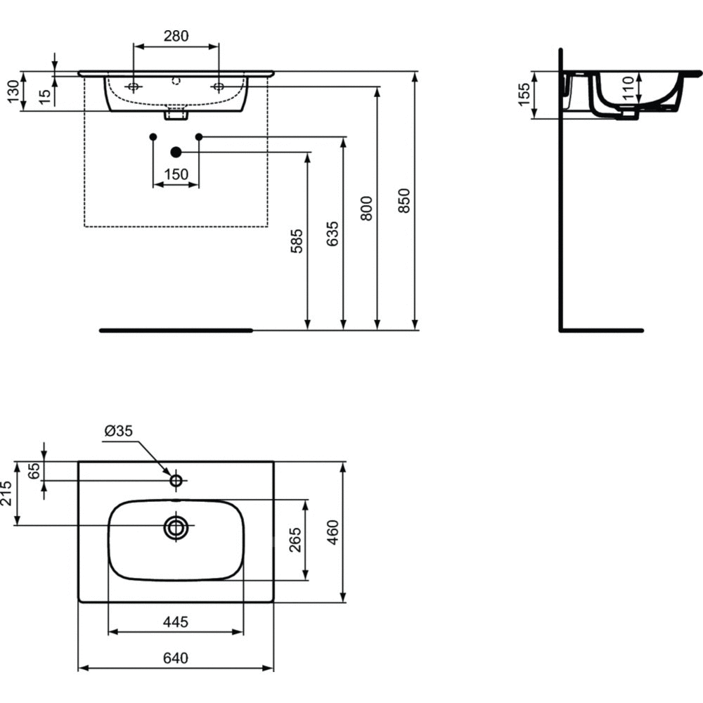 Umywalka Ideal Standard i.life A z powierzchniami bocznymi i centralnym wybitym otworem na baterię oraz przelewem.