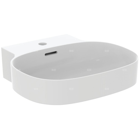 Umywalka Linda-X do montażu na meblach lub blacie (szlifowany spód). Z wybitym otworem na baterię, z przelewem. W komplecie szablon do wycinania TT0299731.