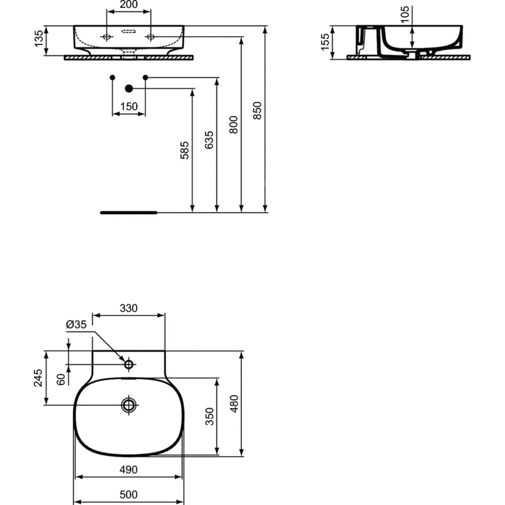Umywalka Linda-X wisząca, nieszlifowana od spodu, do samodzielnego montażu. Z wybitym otworem na baterię, z przelewem.