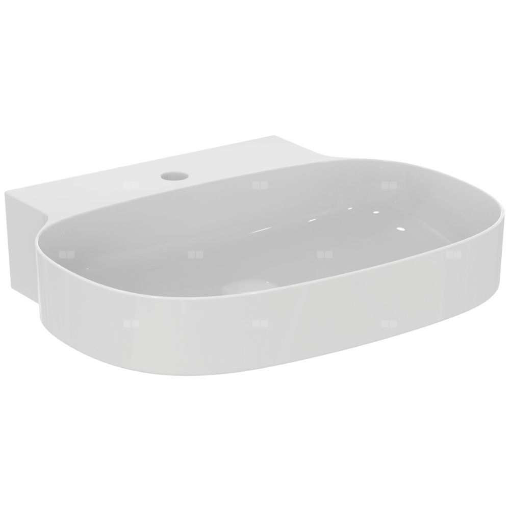 Umywalka Linda-X wisząca, nieszlifowana od spodu, do samodzielnego montażu. Z wybitym otworem na baterię, bez przelewu. Niezbędny montaż z ukryty system przelewowy IdealFlow N8326AA lub syfon typu free flow E2114xx - w osobnym zamówieniu.