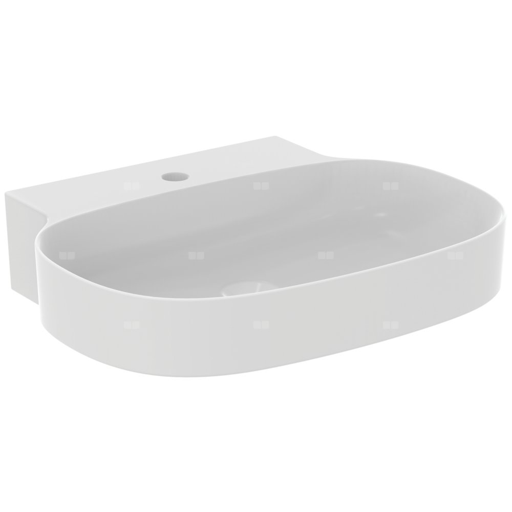 Umywalka Linda-X wisząca, nieszlifowana od spodu, do samodzielnego montażu. Z wybitym otworem na baterię, bez przelewu. Niezbędny montaż z ukryty system przelewowy IdealFlow N8326AA lub syfon typu free flow E2114xx - w osobnym zamówieniu.