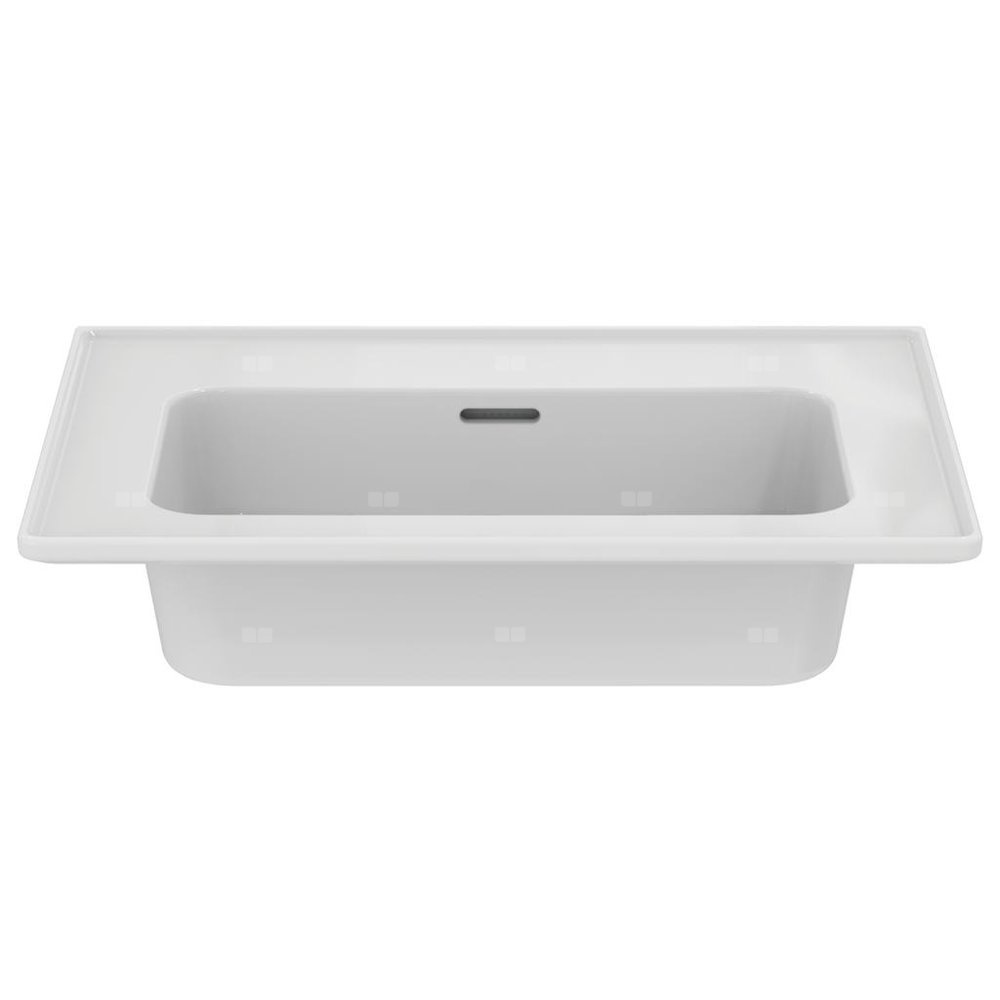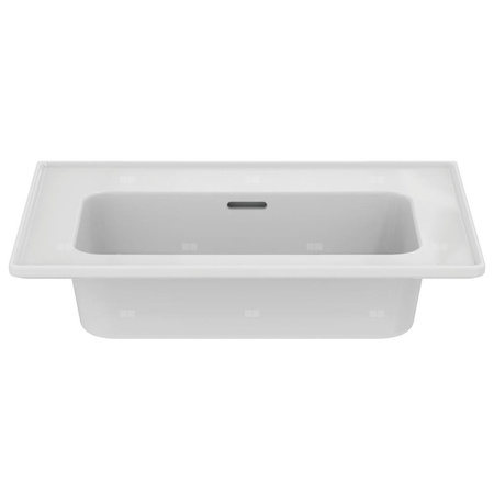 Umywalka Strada II bez otworu na baterię, z przelewem o szczelinowym kształcie oraz korkiem o białej pokrywie. Do montażu z meblami, półpostumentem T299601 lub samodzielnie z syfonem. Opcjonalny montaż z korkiem typu Click-clack z metalową pokrywą T3629AA. Zalecane wyposażenie: zestaw montażowy M10 x 140 mm.