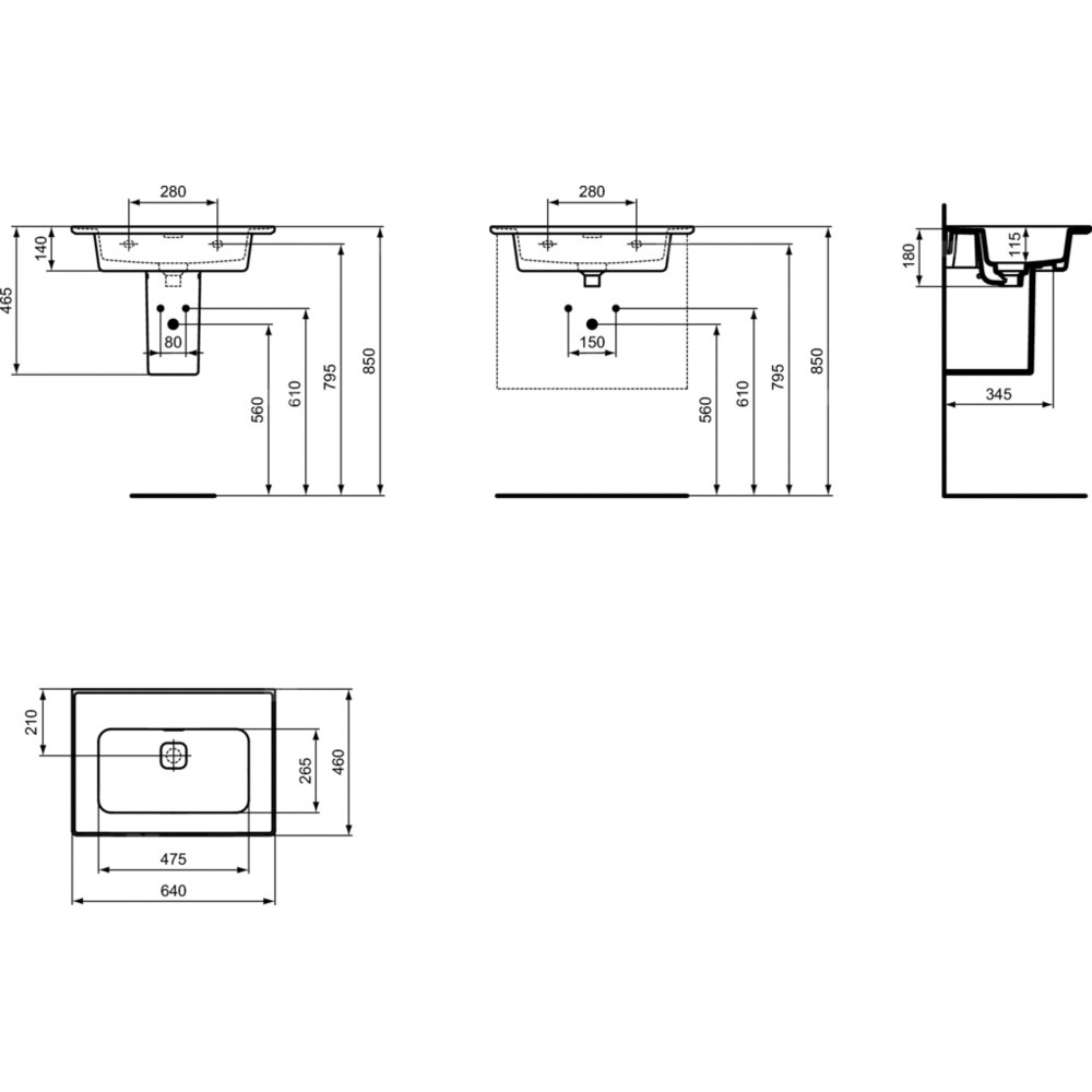 - Typ: Wpuszczane w blat/Z powierzchnią boczną