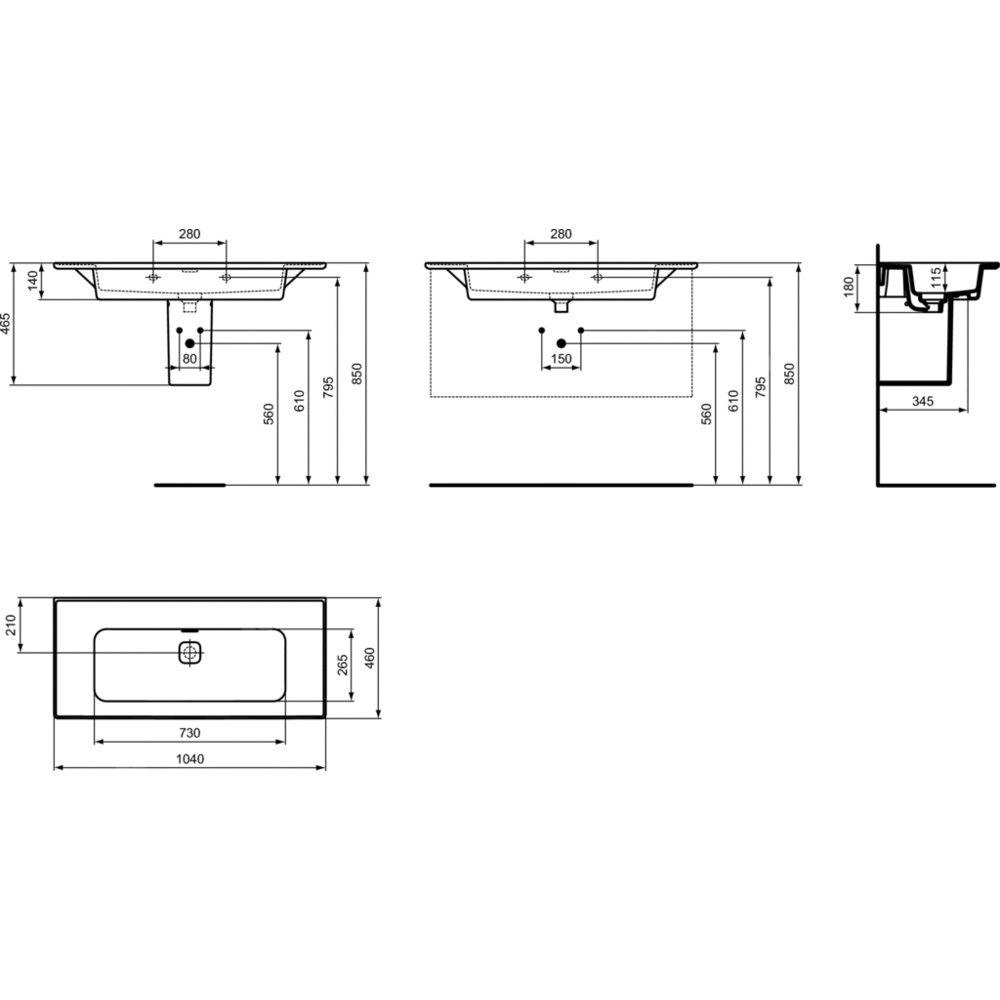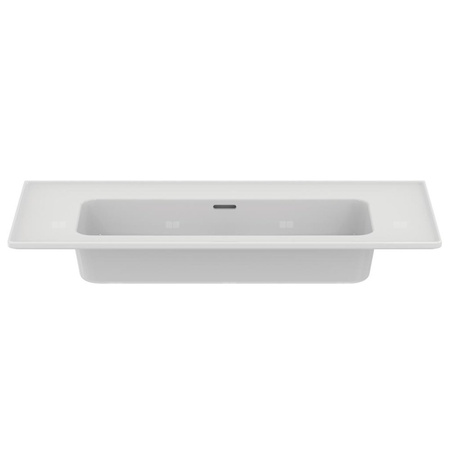 Umywalka Strada II bez otworu na baterię, z przelewem o szczelinowym kształcie oraz korkiem o białej pokrywie. Do montażu z meblami, półpostumentem T299601 lub samodzielnie z syfonem. Opcjonalny montaż z korkiem typu Click-clack z metalową pokrywą T3629AA. Zalecane wyposażenie: zestaw montażowy M10 x 140 mm.