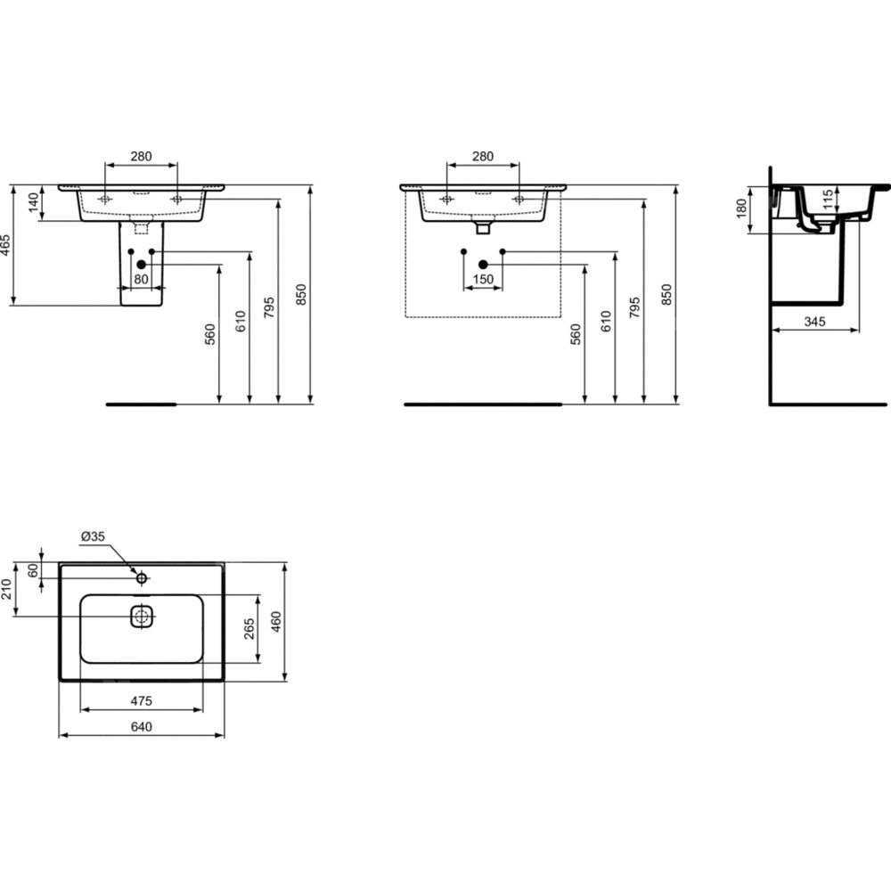 - Typ: Wpuszczane w blat/Z powierzchnią boczną