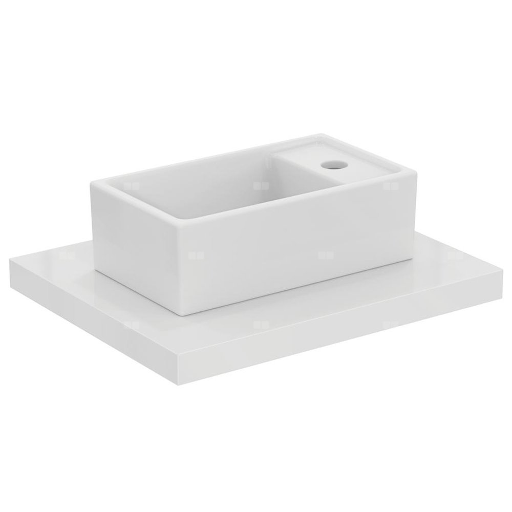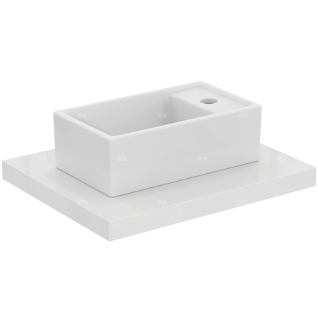 Umywalka nablatowa 37cm. Odwracalna, otwór na baterię po prawej lub lewej stronie. Mocowana do blatu. Do skompletowania z syfonem. Opcjonalny, wandaloodporny zestawem montażowy do blatu D570967. EN 14688. Zalecane dodatkowe elementy: - Zestaw montażowy do blatu (wandaloodporny) D570967. Syfon G1 1/4 - typowy A2305AA. Przyłącze kątowe (dopływ G1/2, bateria 10mm/G3/8) B7883AA. Rozeta do syfonu G1 1/4 (w przypadku montażu baterii bez korka) B4801AA.