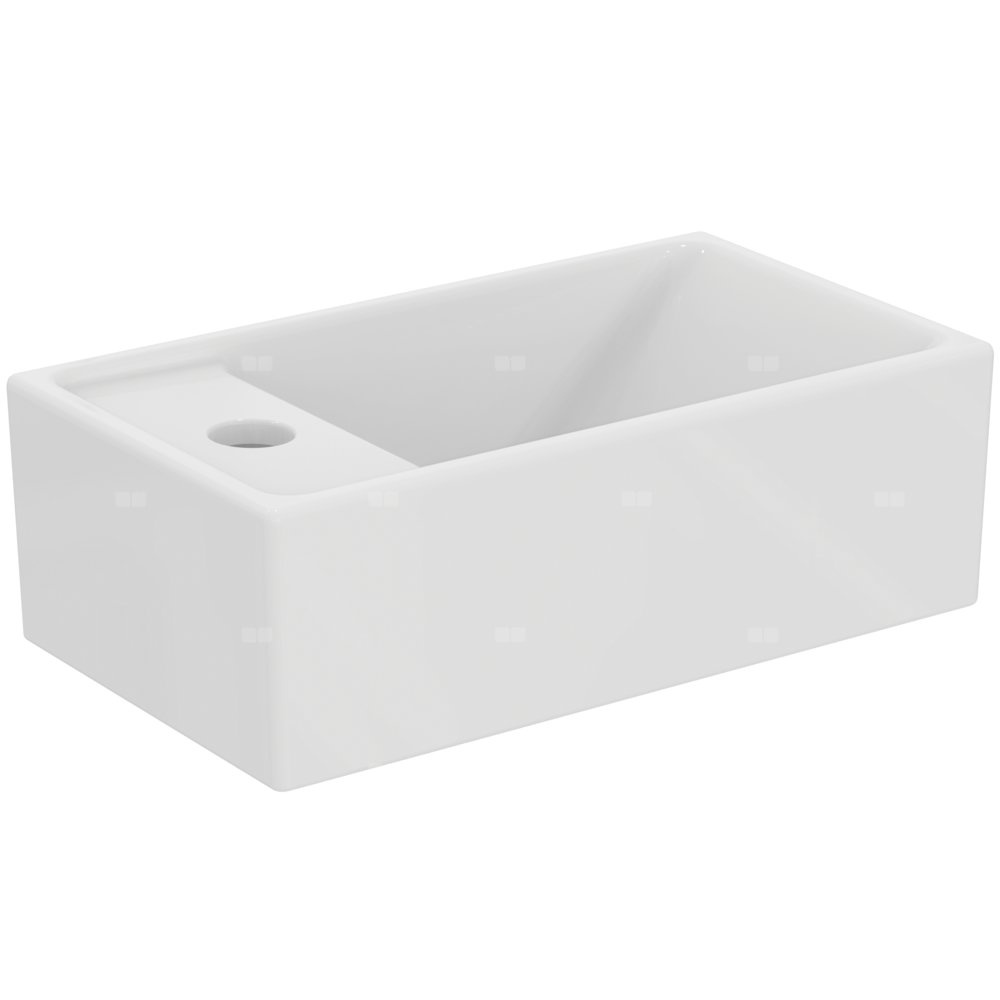 Umywalka do mycia rąk 37 cm. Otwór na baterię po lewej stronie. Otwór na baterię po prawej lub lewej stronie. EN 14688. Mocowana do ściany. Do skompletowania z syfonem. Zalecane dodatkowe elementy: - Zestaw montażowy M8 x 90 mm K714467. Syfon G1 1/4 - typowy A2305AA. Przyłącze kątowe (dopływ G1/2, bateria 10mm/G3/8) B7883AA. Rozeta do syfonu G1 1/4 (w przypadku montażu baterii bez korka) B4801AA.