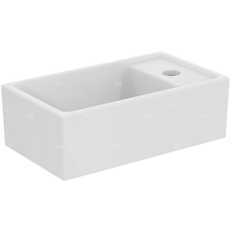 Umywalka do mycia rąk 37 cm. Otwór na baterię po prawej stronie. Otwór na baterię po prawej lub lewej stronie. EN 14688. Mocowana do ściany. Do skompletowania z syfonem. Zalecane dodatkowe elementy: - Zestaw montażowy M8 x 90 mm K714467. Syfon G1 1/4 - typowy A2305AA. Przyłącze kątowe (dopływ G1/2, bateria 10mm/G3/8) B7883AA. Rozeta do syfonu G1 1/4 (w przypadku montażu baterii bez korka) B4801AA.