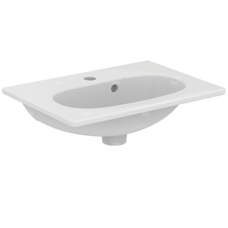 Umywalka Tesi 50 cm z powierzchniami bocznymi - krótki wysięg - 1 otwór na baterię.