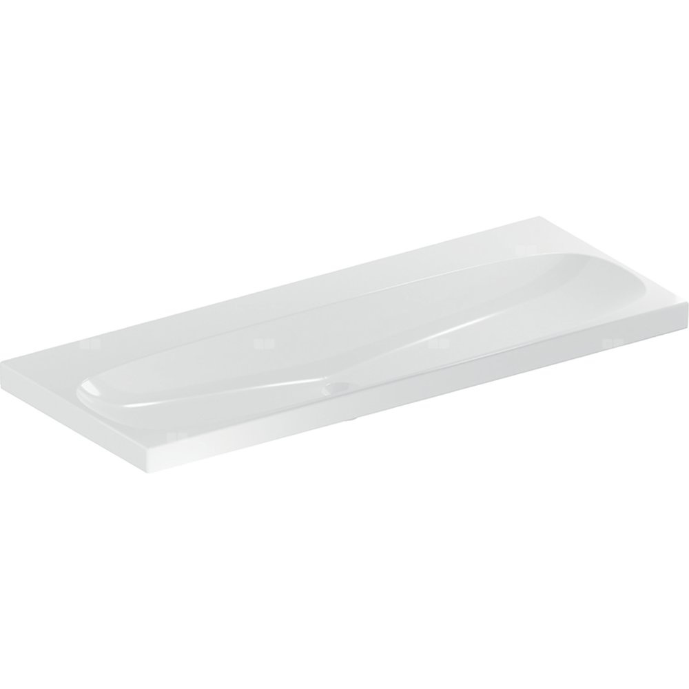 Umywalka GEBERIT Acanto 2-stanowiskowa prostokątna, biała / KeraTect, 1200mm, bez otworu na baterię, bez odpływu przelewowego, półka od ściany