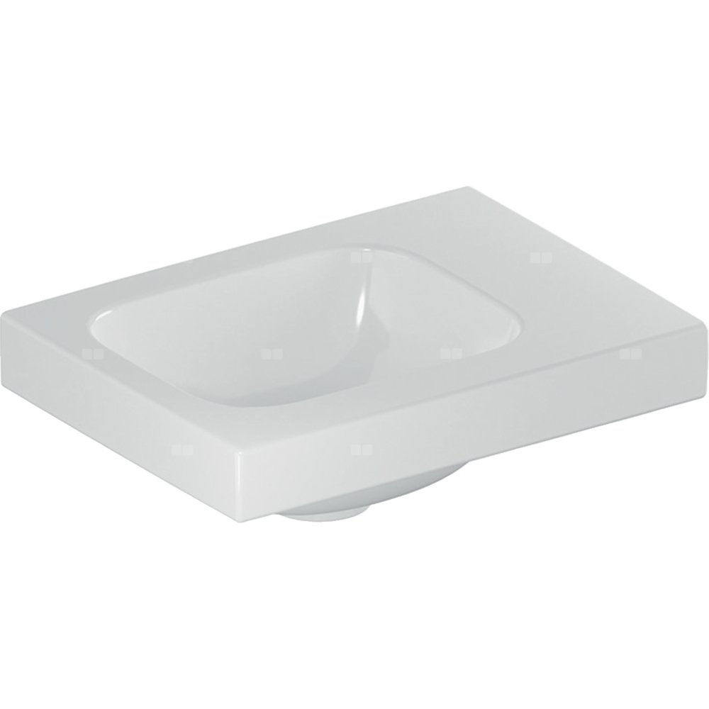 Umywalka GEBERIT iCon Light prostokątna, biała, 380mm, bez otworu na baterię, bez odpływu przelewowego, półka z prawej