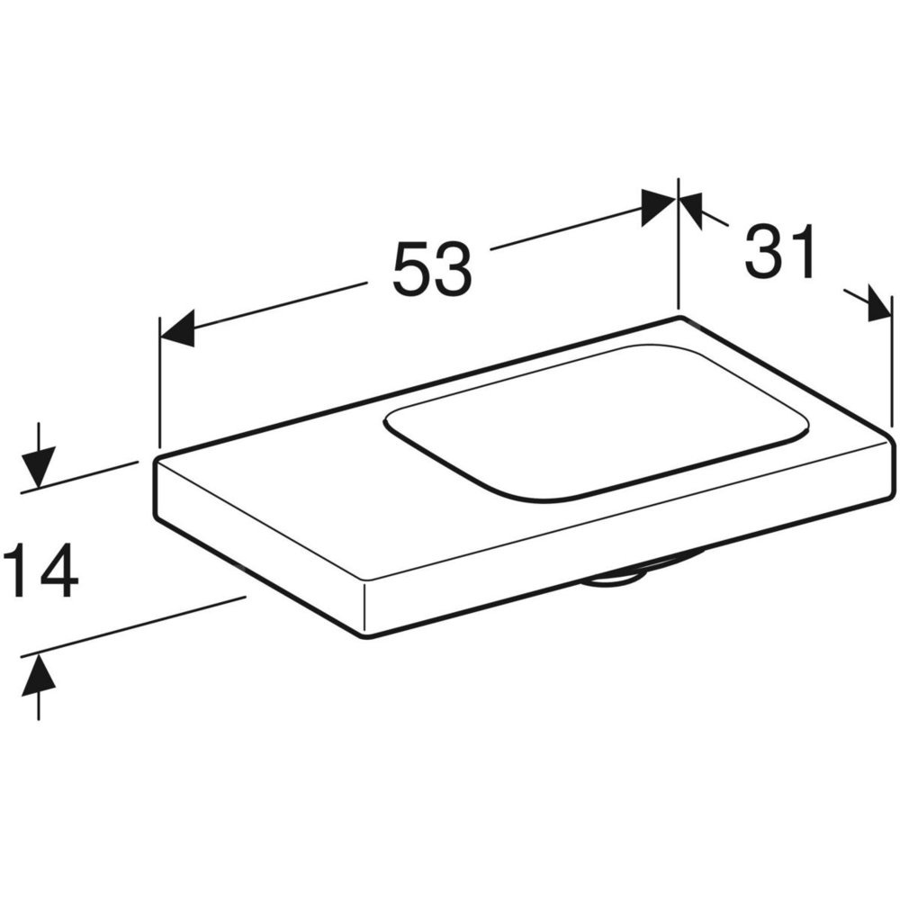 Umywalka GEBERIT iCon Light prostokątna, biała, 530mm, bez otworu na baterię, bez odpływu przelewowego, półka z lewej