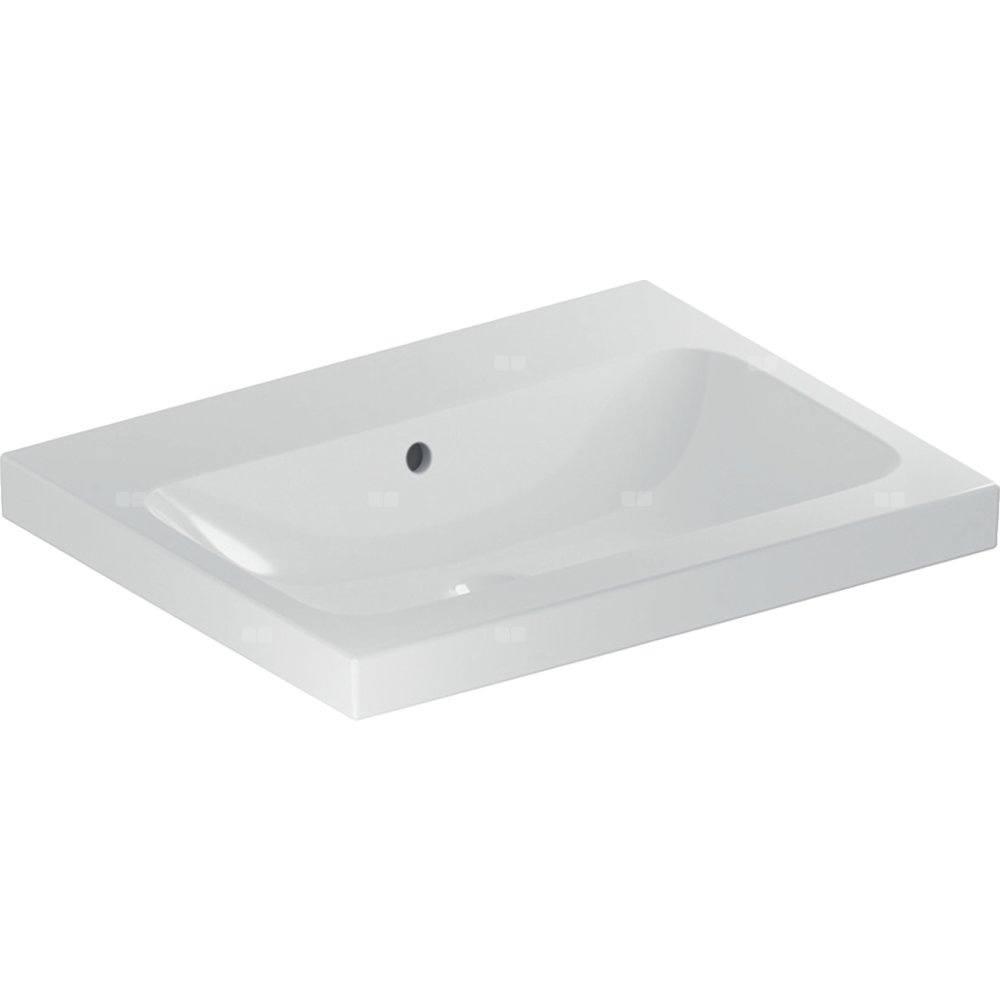 Umywalka GEBERIT iCon Light prostokątna, biała, 600mm, bez otworu na baterię, z odpływem przelewowym, półka od ściany