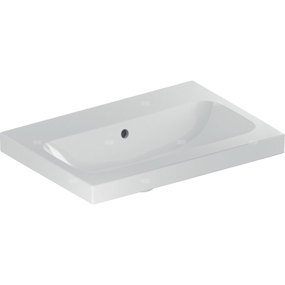 Umywalka GEBERIT iCon Light prostokątna, biała, 600mm, bez otworu na baterię, z odpływem przelewowym, półka od ściany