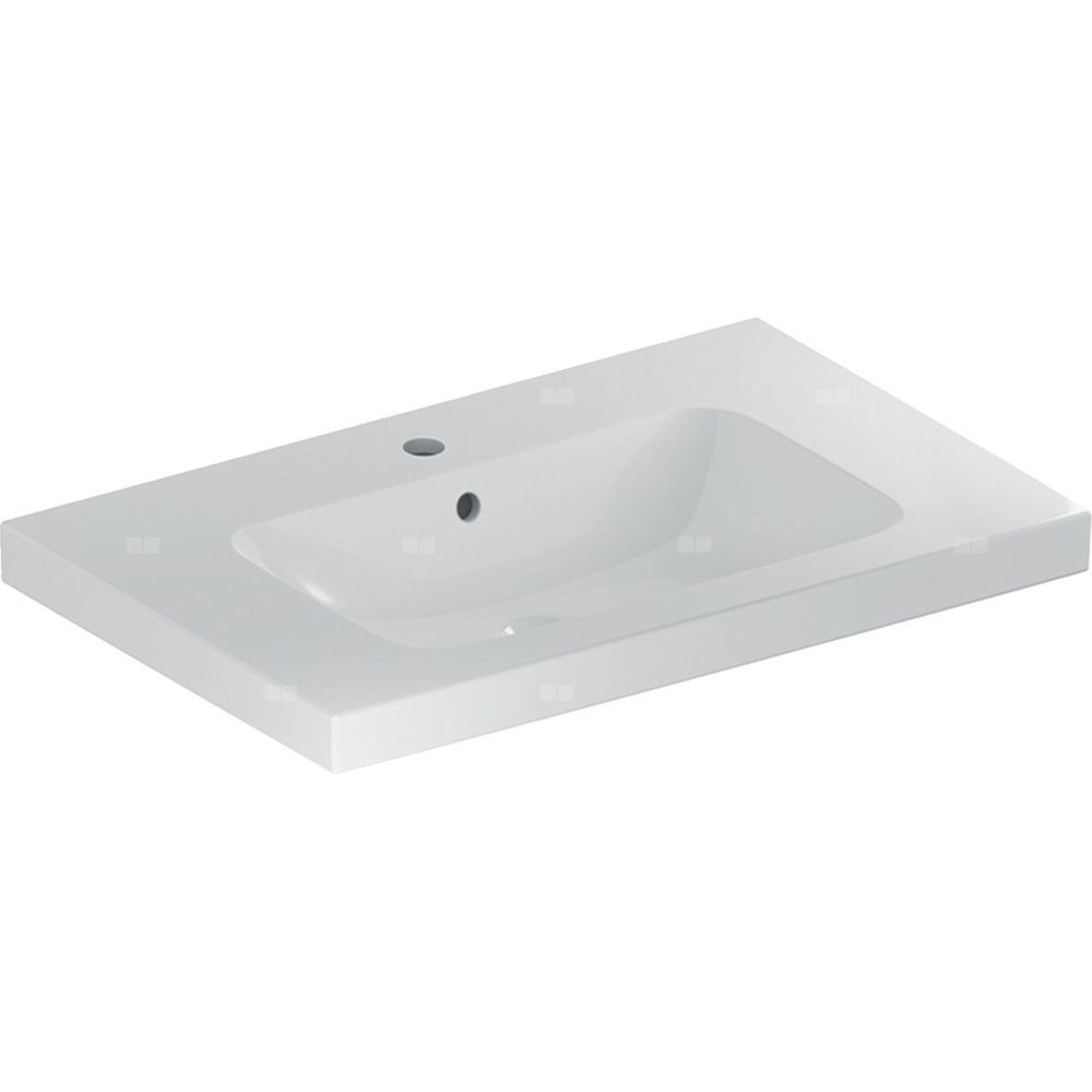 Umywalka GEBERIT iCon Light prostokątna, biała, 900mm, otwór na baterię na środku, z odpływem przelewowym, półki z obu stron