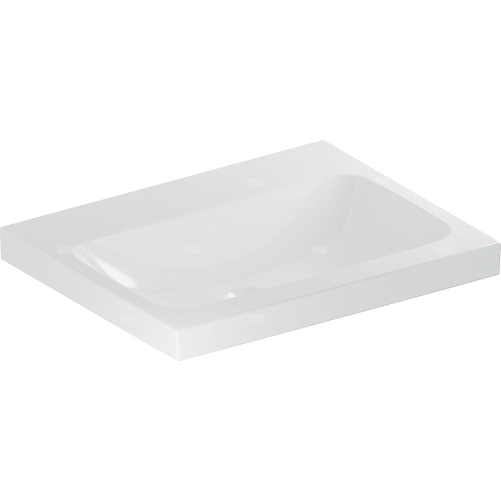 Umywalka GEBERIT iCon Light prostokątna, biała / KeraTect, 600mm, bez otworu na baterię, bez odpływu przelewowego, półka od ściany