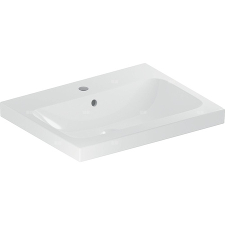 Umywalka GEBERIT iCon Light prostokątna, biała / KeraTect, 600mm, otwór na baterię na środku, z odpływem przelewowym, półka od ściany