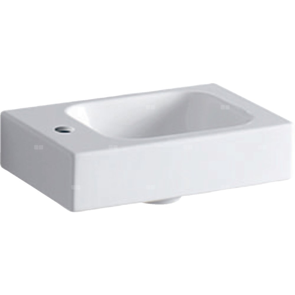 Umywalka GEBERIT iCon prostokątna, biała / KeraTect, 380mm, otwór na baterię z lewej, bez odpływu przelewowego, półka z lewej