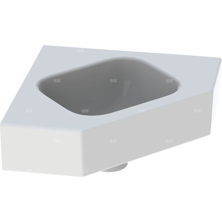 Umywalka GEBERIT iCon sześciokątna (narożna), biała, 460mm, bez otworu na baterię, bez odpływu przelewowego, półki z obu stron