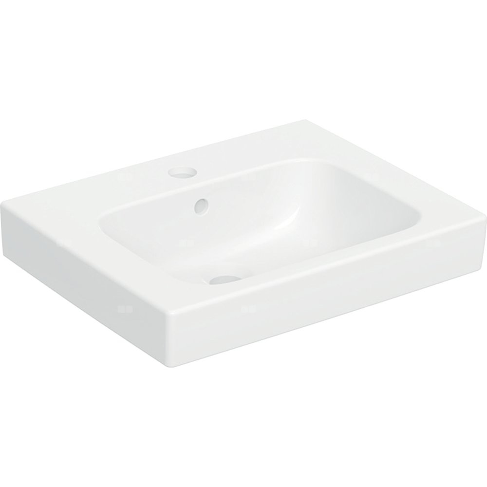 Umywalka GEBERIT Modo prostokątna, biała, 500mm, otwór na baterię na środku, z odpływem przelewowym, półka od ściany
