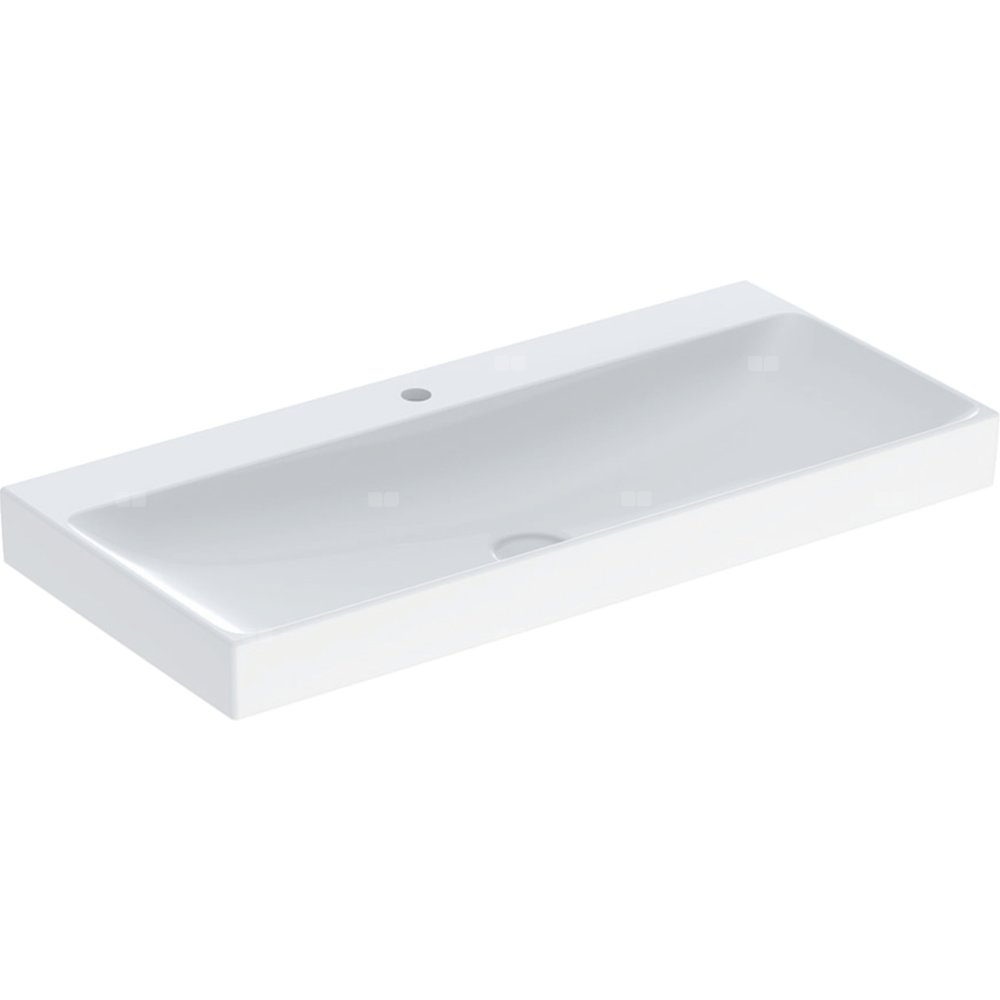 Umywalka GEBERIT ONE prostokątna, biała / KeraTect, 1050mm, otwór na baterię na środku, bez odpływu przelewowego, półka od ściany