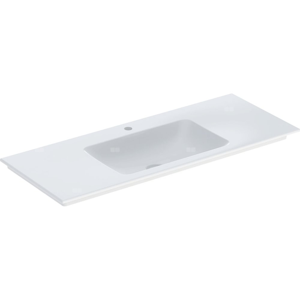 Umywalka GEBERIT ONE prostokątna, biała / KeraTect, 1200mm, otwór na baterię na środku, nakładany od góry, bez odpływu przelewowego, półki z obu stron