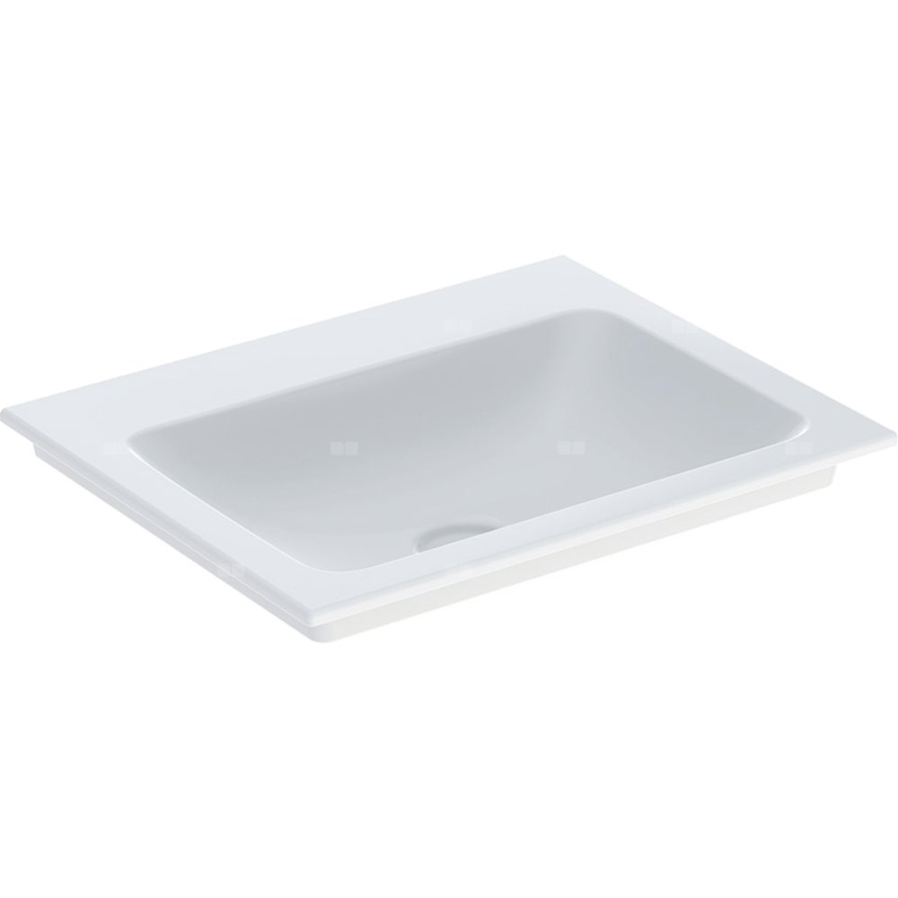 Umywalka GEBERIT ONE prostokątna, biała / KeraTect, 600mm, bez otworu na baterię, nakładany od góry, bez odpływu przelewowego, półka od ściany
