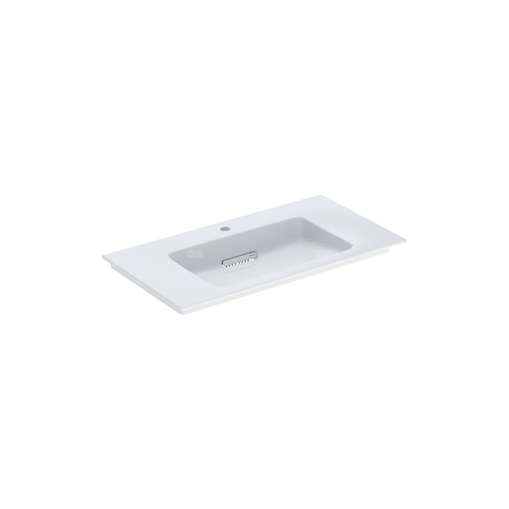 Umywalka GEBERIT ONE prostokątna, biała / KeraTect, 900mm, otwór na baterię na środku, nakładany od góry, bez odpływu przelewowego, półki z obu stron