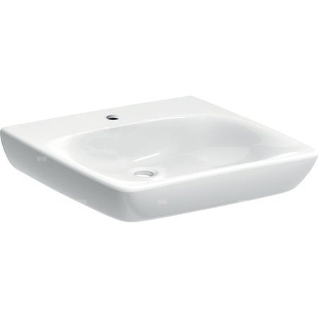 Umywalka GEBERIT Selnova Comfort prostokątna, biała, 600mm, otwór na baterię na środku, bez odpływu przelewowego, półka od ściany