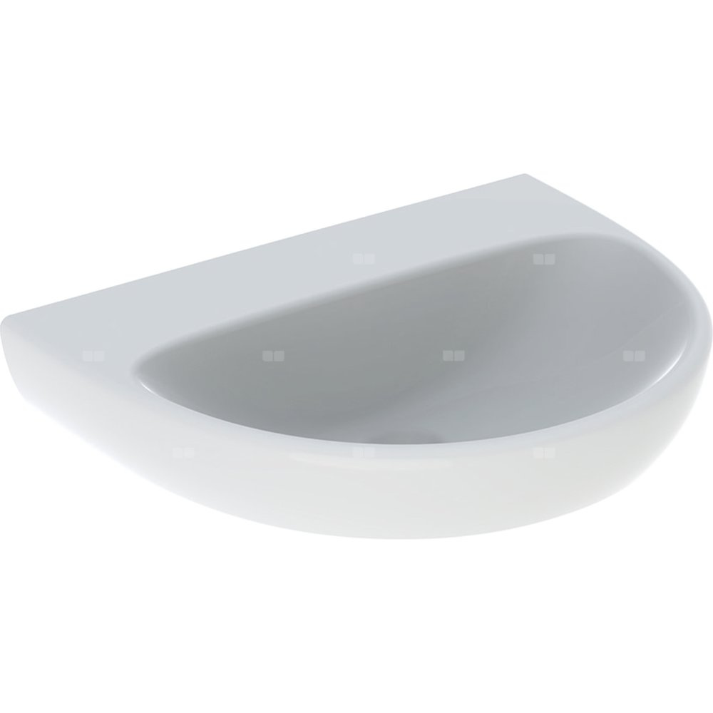 Umywalka GEBERIT Selnova owalna, biała, 600mm, bez otworu na baterię, bez odpływu przelewowego, półka od ściany