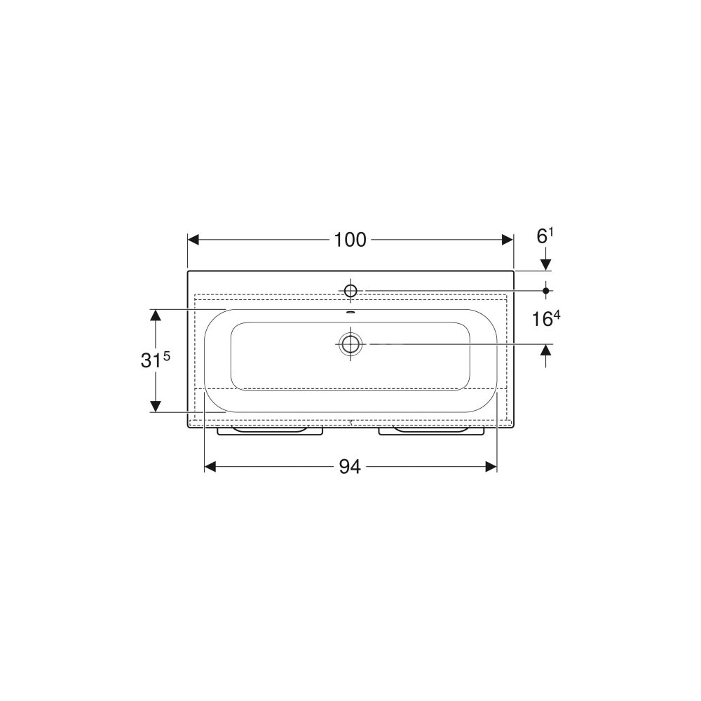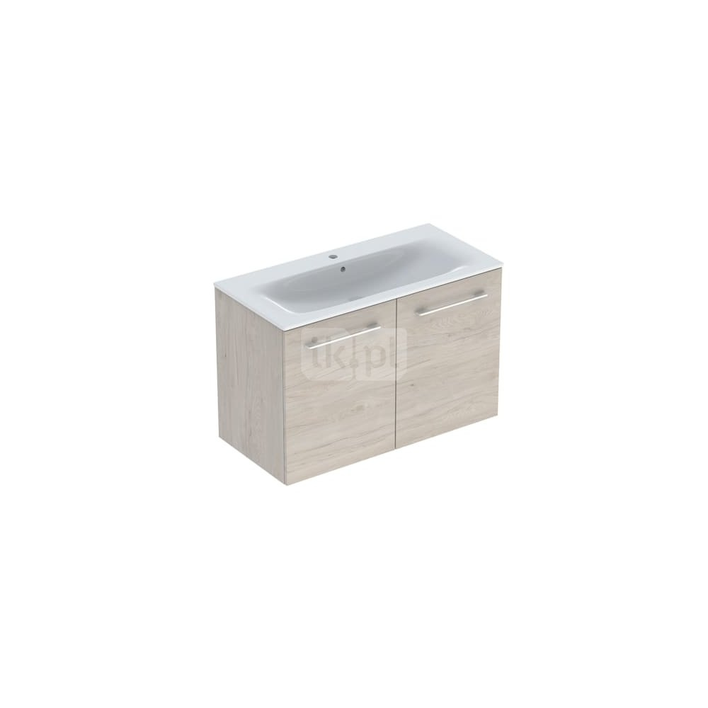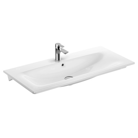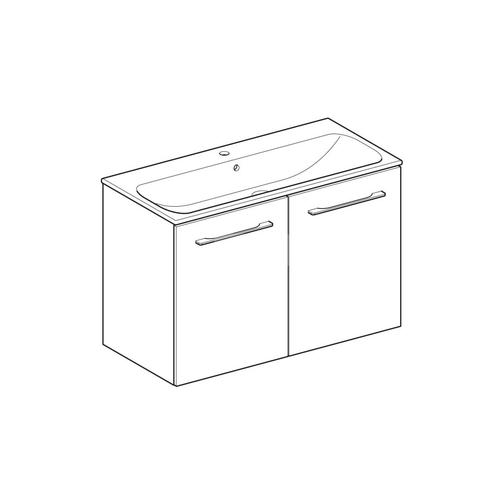 Umywalka GEBERIT Selnova Square prostokątna, biała, 1000mm, otwór na baterię na środku, nakładany od góry, z odpływem przelewowym, półka od ściany