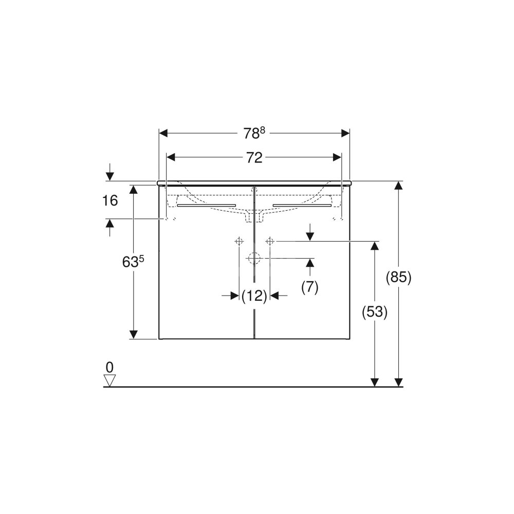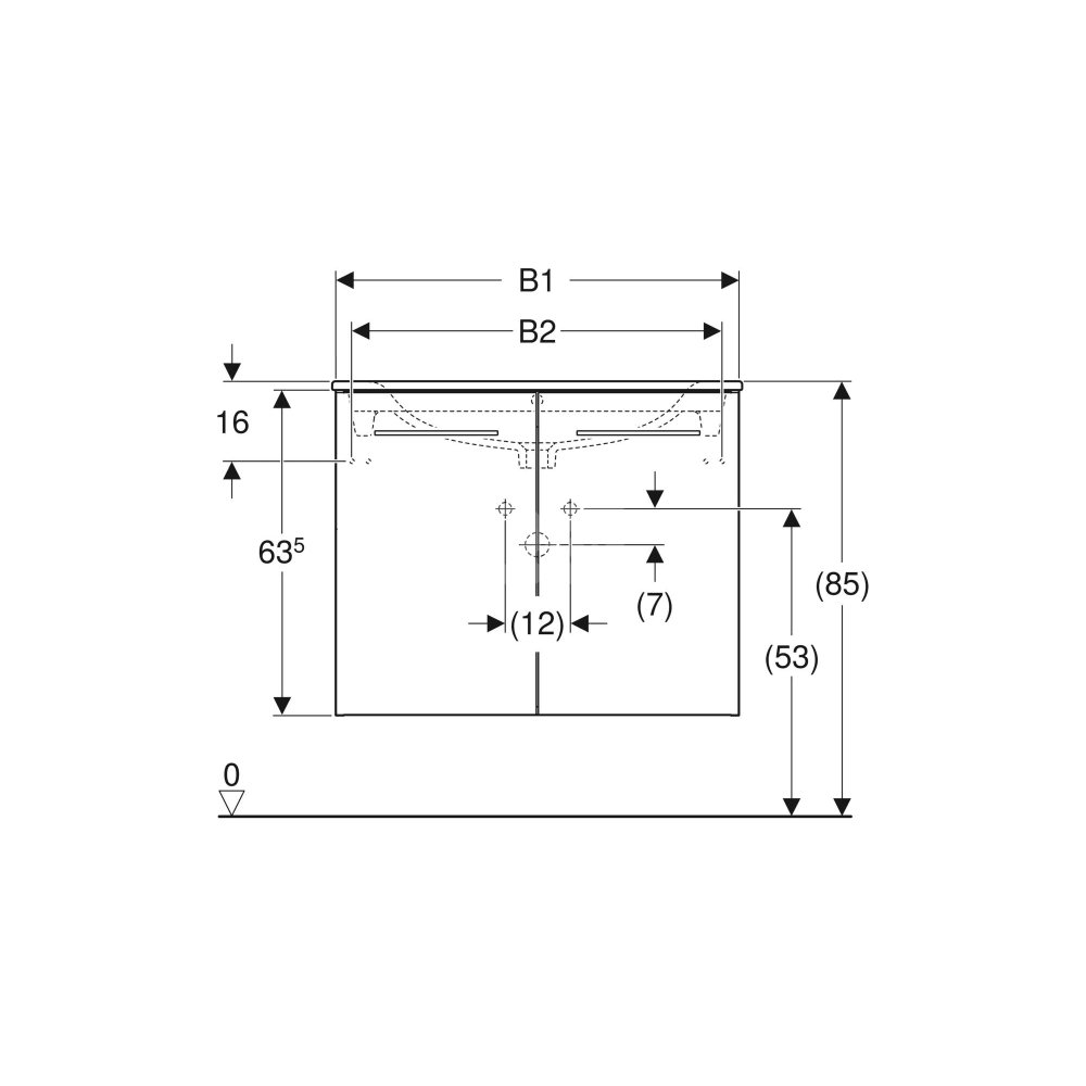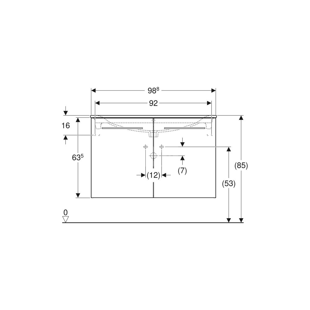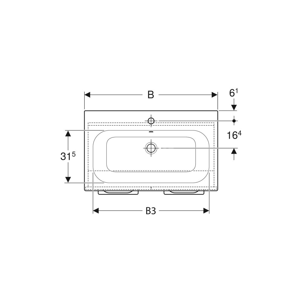 Umywalka GEBERIT Selnova Square prostokątna, biała, 1000mm, otwór na baterię na środku, nakładany od góry, z odpływem przelewowym, półka od ściany