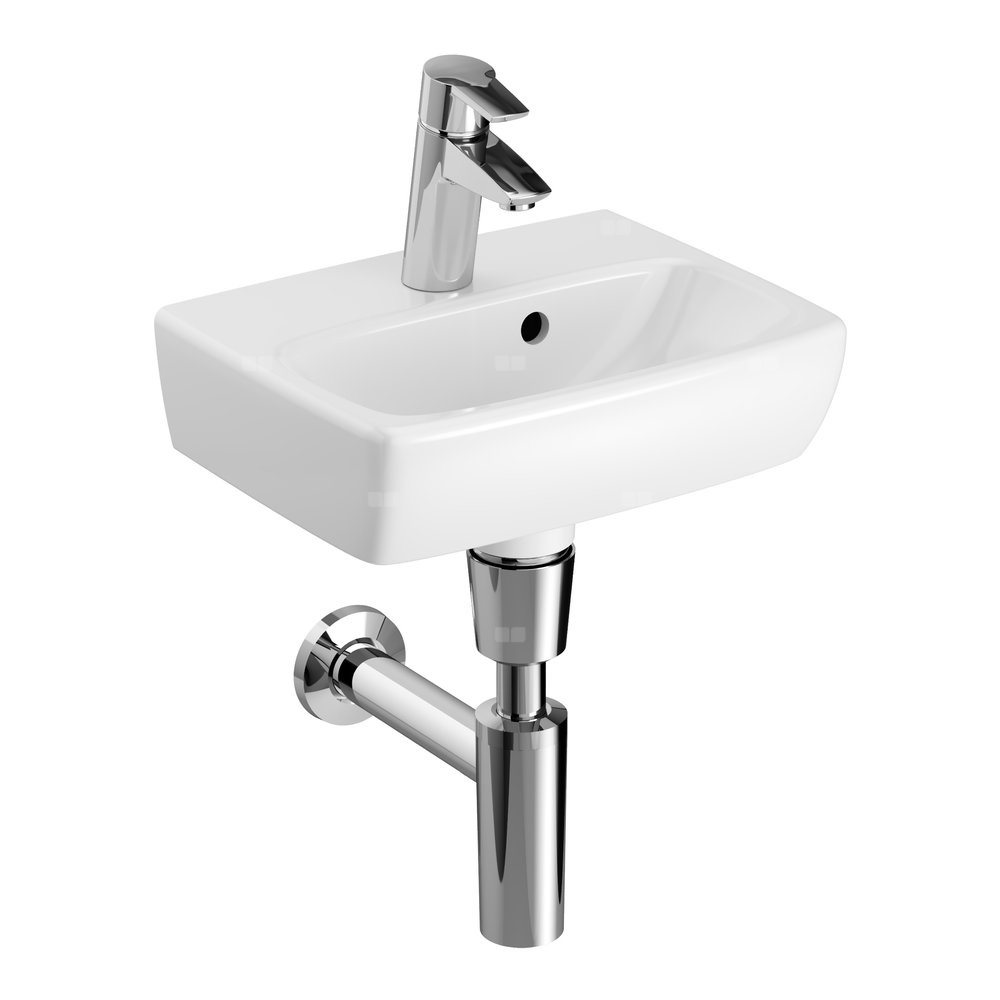 Umywalka GEBERIT Selnova Square prostokątna, biała, 360mm, otwór na baterię na środku, z odpływem przelewowym, półka od ściany