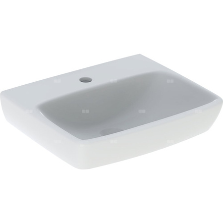 Umywalka GEBERIT Selnova Square prostokątna, biała, 500mm, otwór na baterię na środku, bez odpływu przelewowego, półka od ściany
