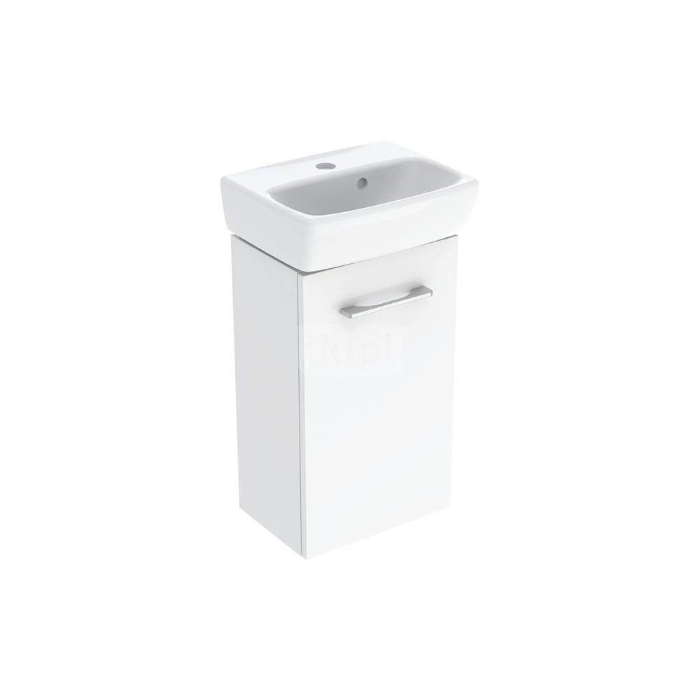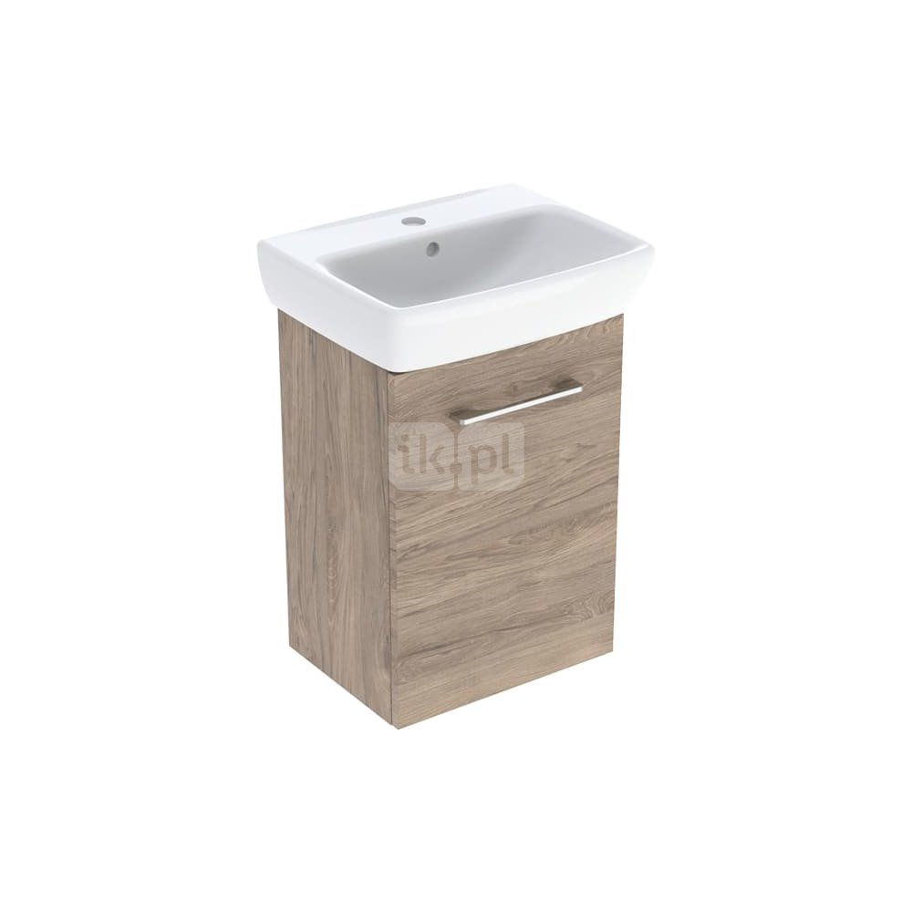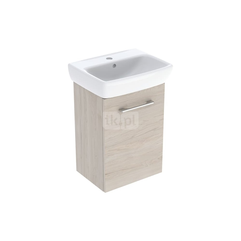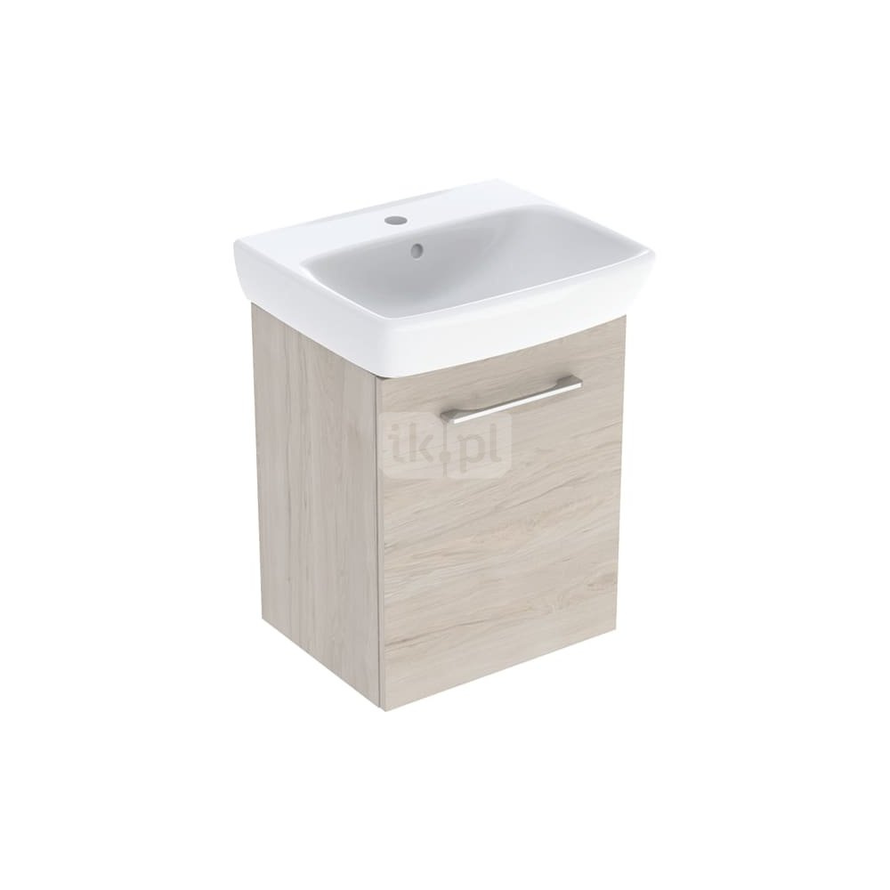 Umywalka GEBERIT Selnova Square prostokątna, biała, 500mm, otwór na baterię na środku, z odpływem przelewowym, półka od ściany
