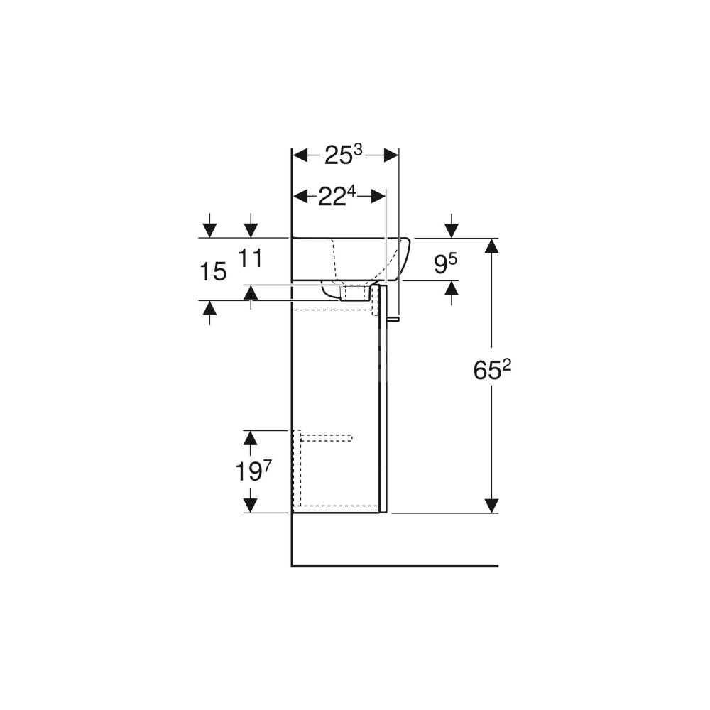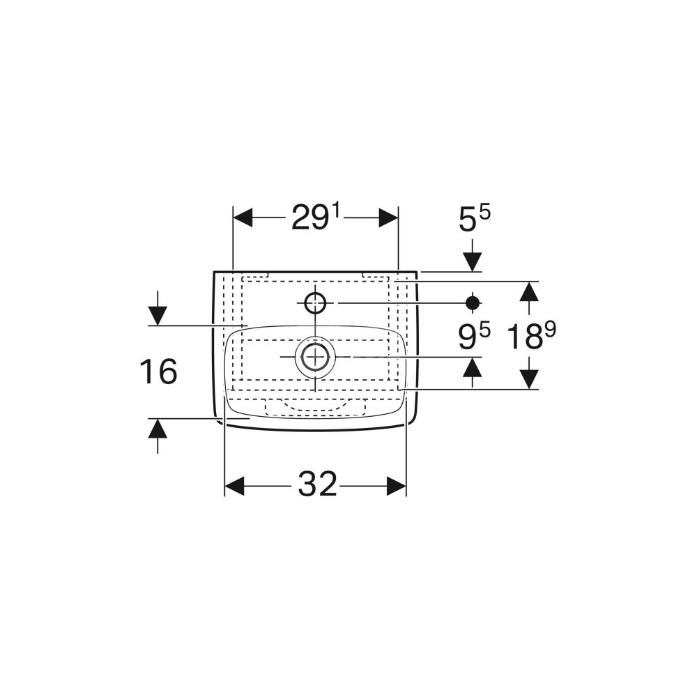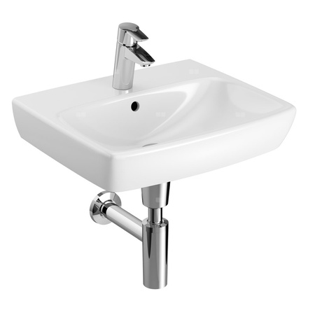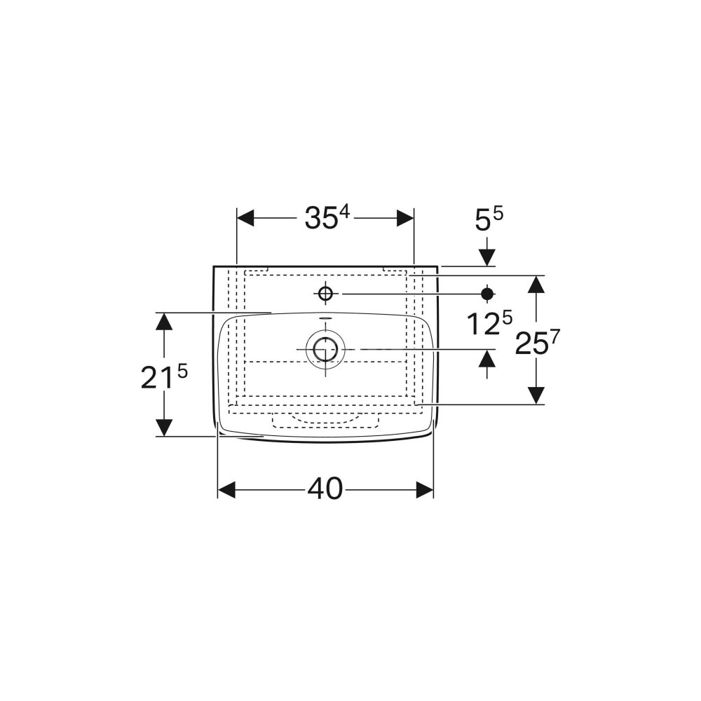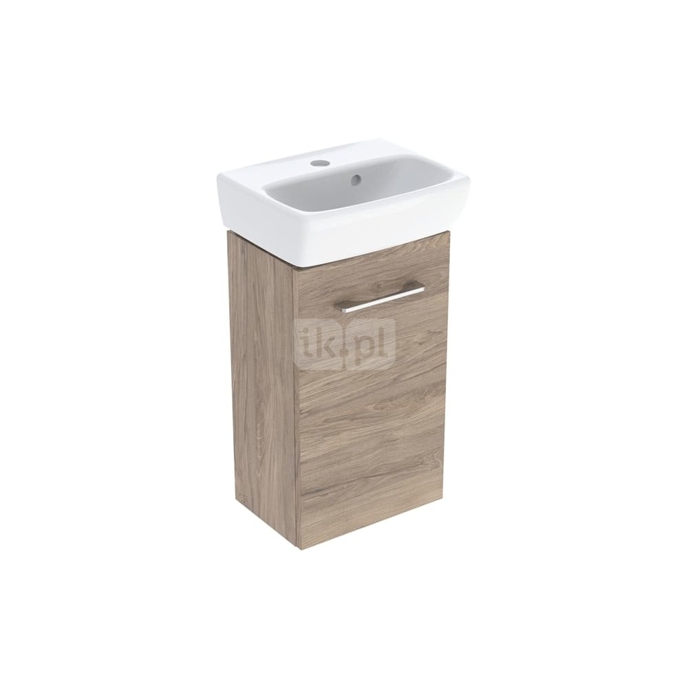 Umywalka GEBERIT Selnova Square prostokątna, biała, 500mm, otwór na baterię na środku, z odpływem przelewowym, półka od ściany