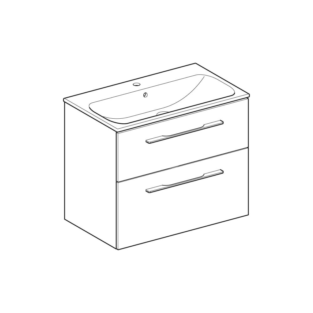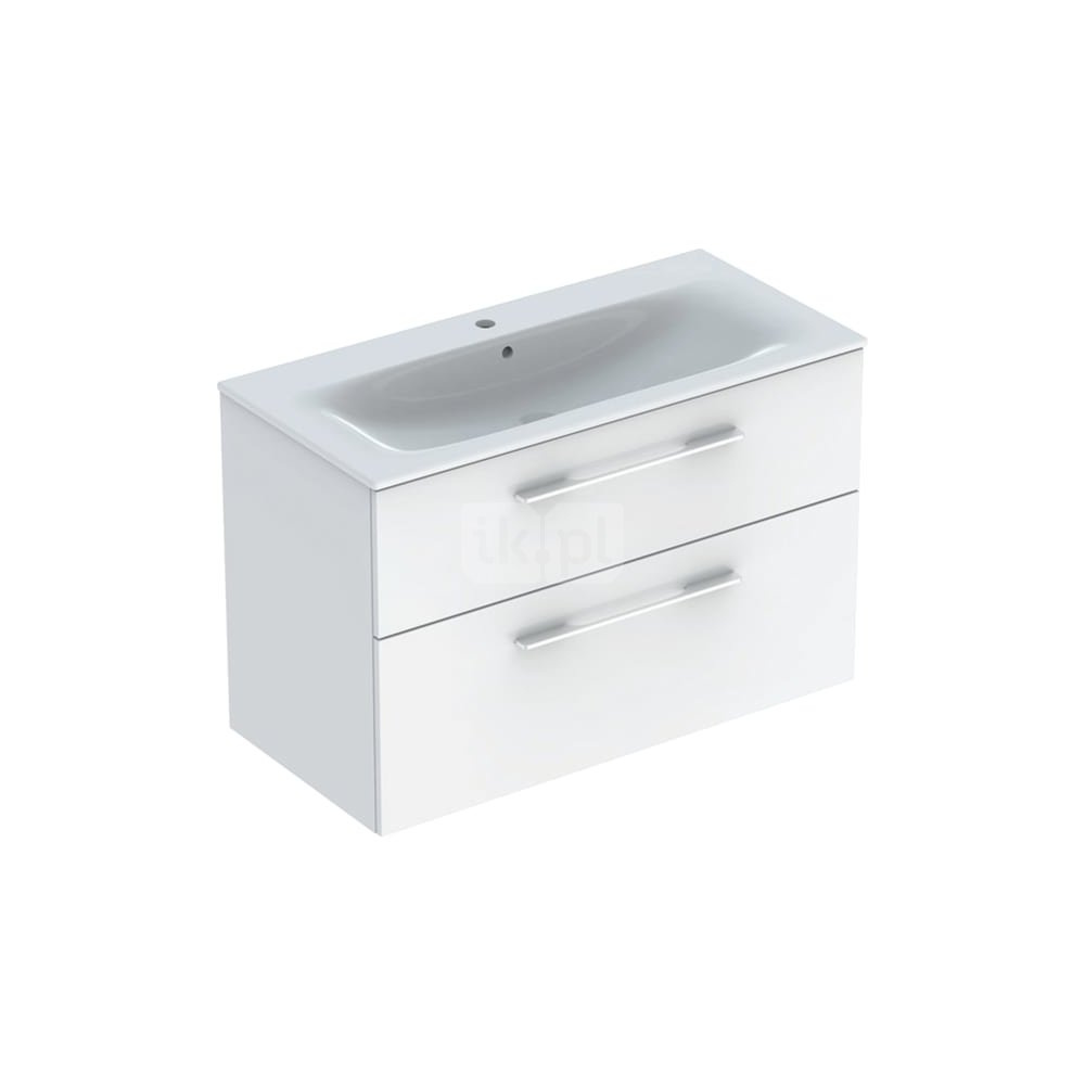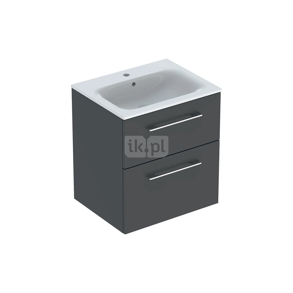 Umywalka GEBERIT Selnova Square prostokątna, biała, 550mm, otwór na baterię na środku, nakładany od góry, z odpływem przelewowym, półka od ściany